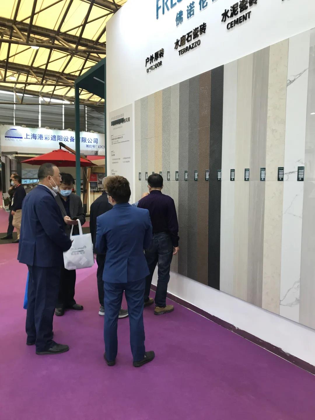 此次上海國際酒店工程設計與用品博覽會(huì ),佛諾倫莎瓷磚重點(diǎn)展出了18mm高光面戶(hù)外園林厚磚、水磨石瓷磚、水泥瓷磚等現代仿古磚系列,迎來(lái)全球各地的客商朋友參觀(guān)和合作洽談。