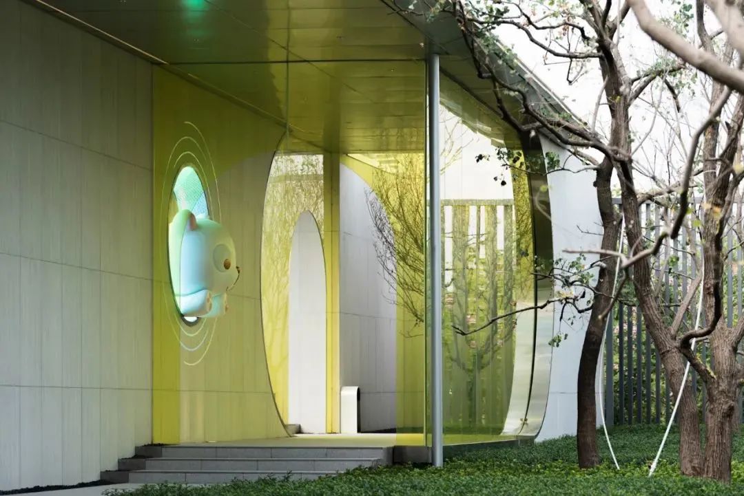 要說(shuō)最吸睛,最彰顯出年輕而前衛的審美品味的,莫屬于青黃色拱形玻璃立板,打破了傳統庭院的莊重和嚴肅,而添置的小熊形象,更是增添了無(wú)窮的趣味,充滿(mǎn)了設計考量。有活力且向公共開(kāi)放的高品質(zhì)商業(yè)建筑,表達獨特的美學(xué)追求與鮮明個(gè)性。